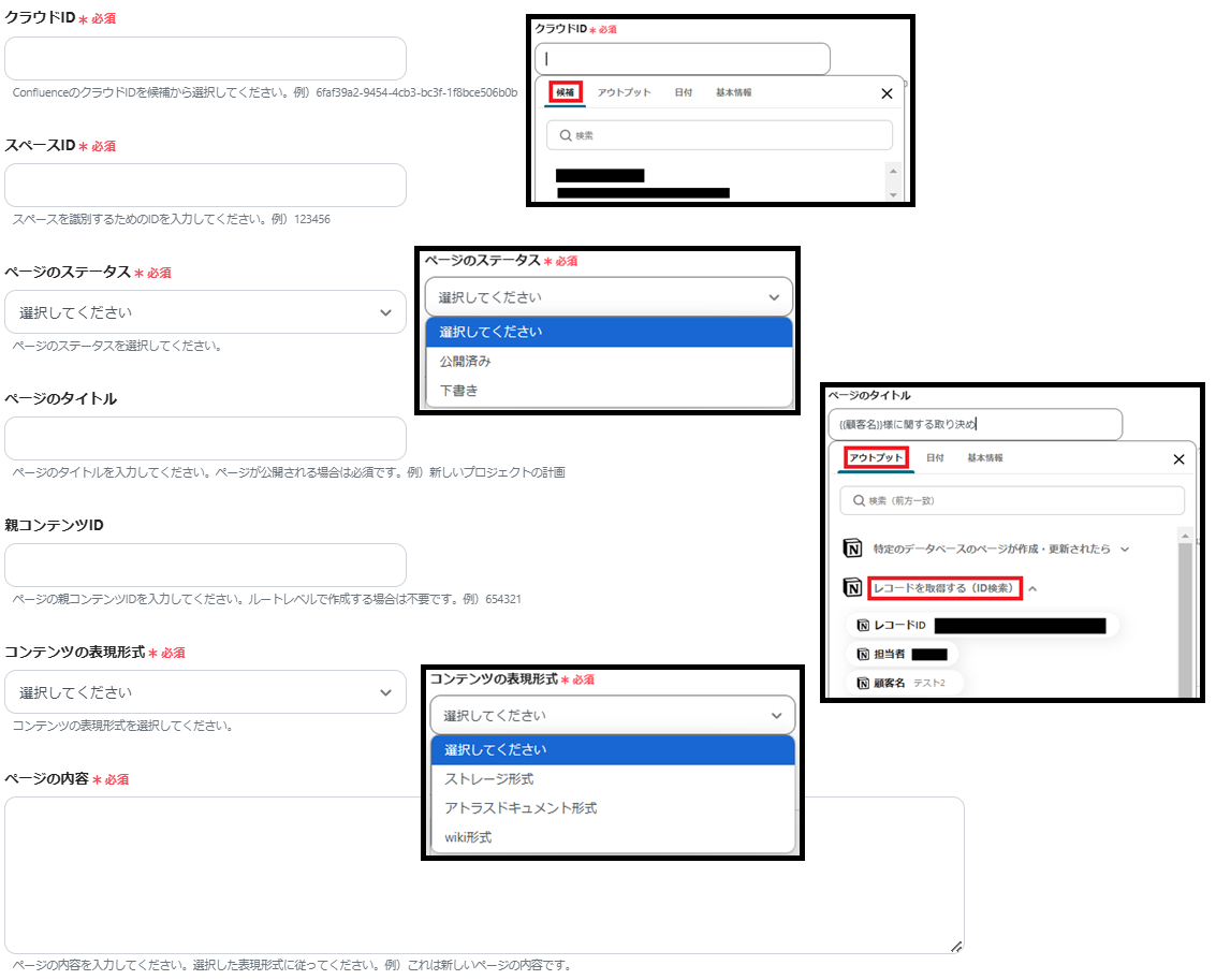 最後に、Notionから取得した情報を利用してConfluenceにページを作成する設定を行います。