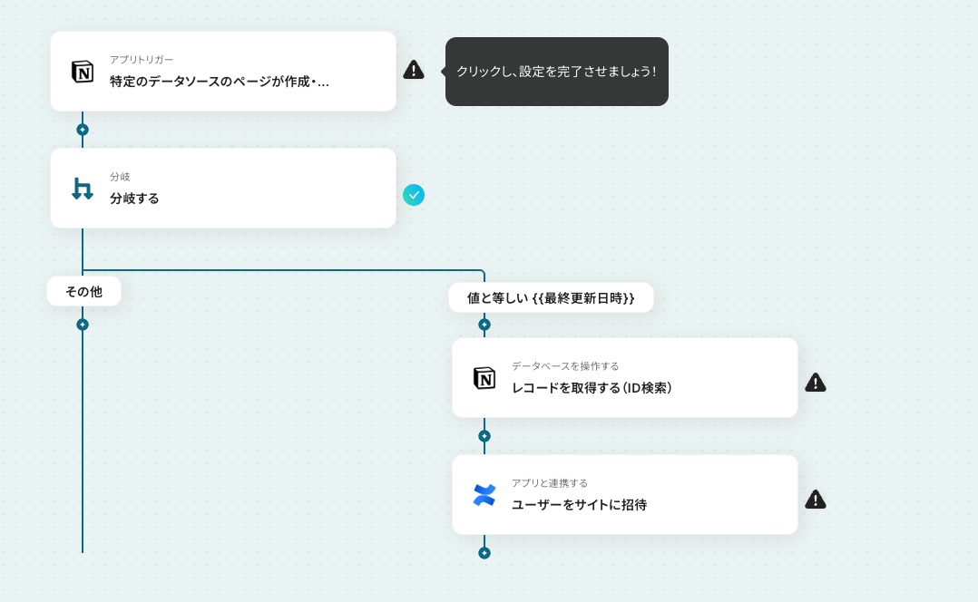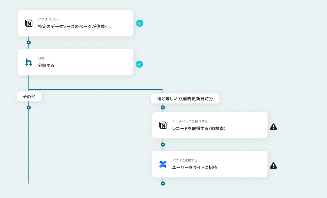 ステップ3:フローの起点となるNotionのトリガー設定と、その後に続くConfluenceのオペレーション設定