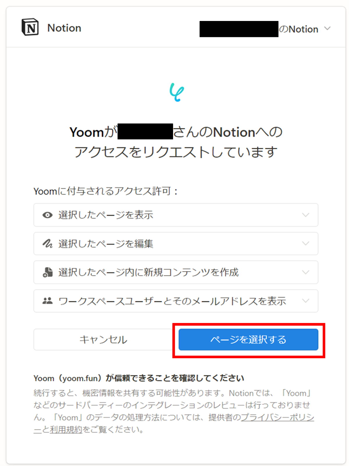 (3)以下の内容が表示されるので、「ページを選択する」をクリックします。
