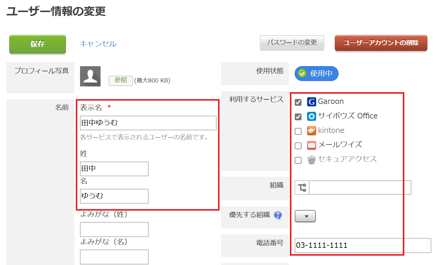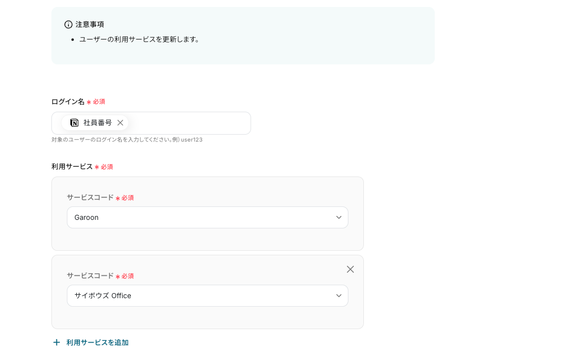 最後に「ユーザーの利用サービスを更新 」をクリックしてください。