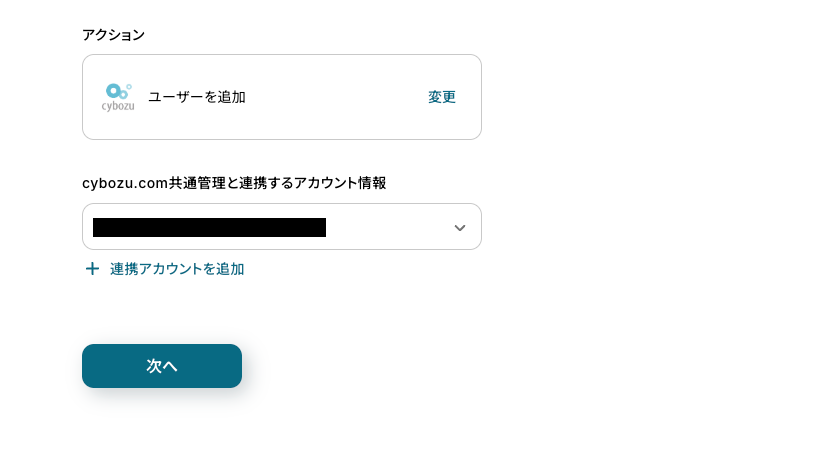 こちらも、連携するアカウント情報を確認します。 アクションは変更せず、次に進んでください。