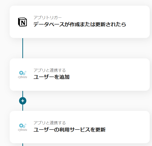 Notionで登録された従業員にGaroonやサイボウズ Officeのアカウントを付与するフローです。