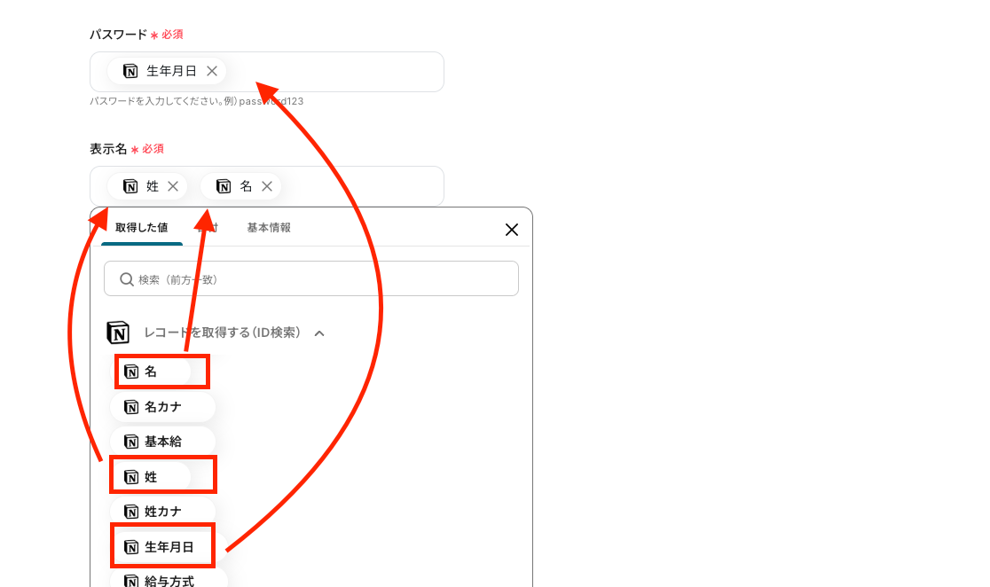 Notionのトリガー設定では、従業員情報を管理しているデータソースIDを任意で設定してください。 AKASHIに従業員を追加するアクションでは、Notionから取得したどの情報をどの項目に登録するかを自由に設定してください。 ■注意事項