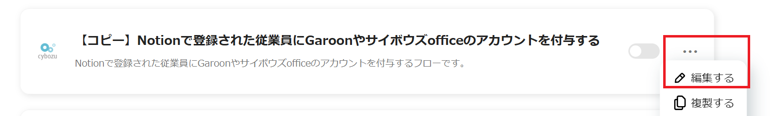 Notionとcybozu.com共通管理の連携フローの作り方 それでは早速、Yoomを使って今回使用するアプリを連携していきましょう! マイアプリ登録が完了したら、「Notionで登録された従業員にGaroonやサイボウズ Officeのアカウントを付与する」 フローボットを作成していきます。