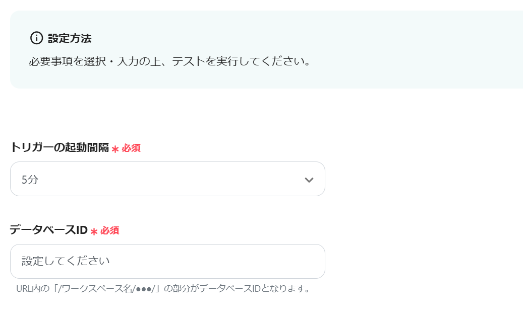 トリガーの起動間隔:5分、10分、15分、30分、60分の間隔から選べます。