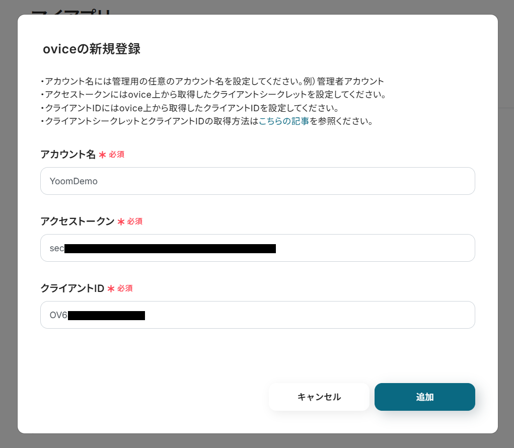 ・Zoom、oviceのそれぞれとYoomを連携してください。