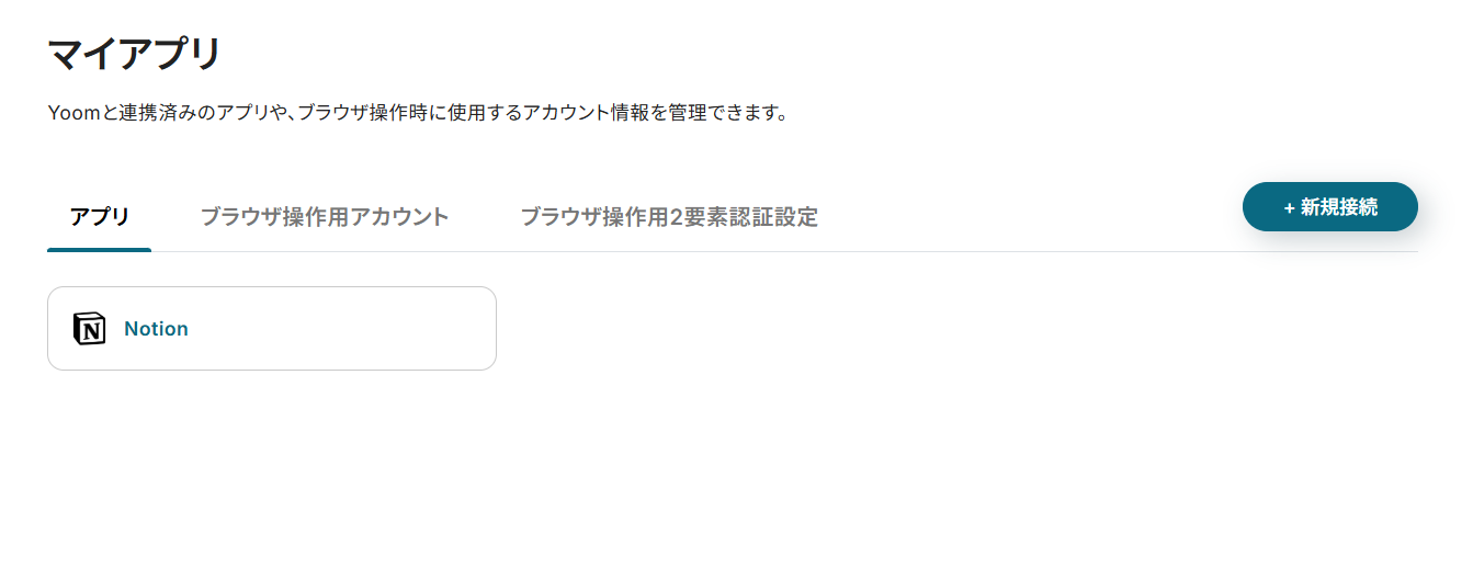 先ずは、Yoomと連携させたいNotionアカウントとoviceアカウントを「マイアプリ」に登録しましょう。