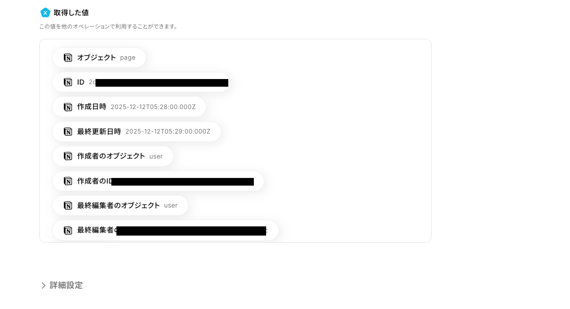 ※『取得した値』は、このページでは使いません。後続のオペレーション設定で使用することが可能です。