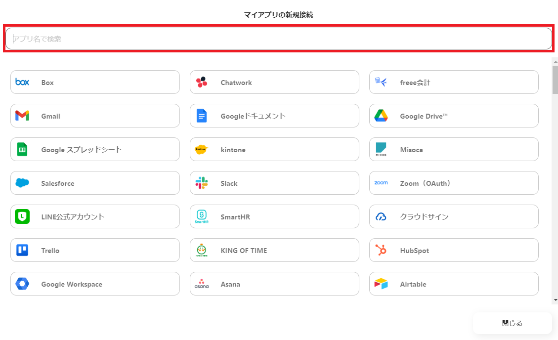 連携したいアプリ名を検索窓に入力し、画面に従ってログインまたはサインインをすることで連携が完了します。