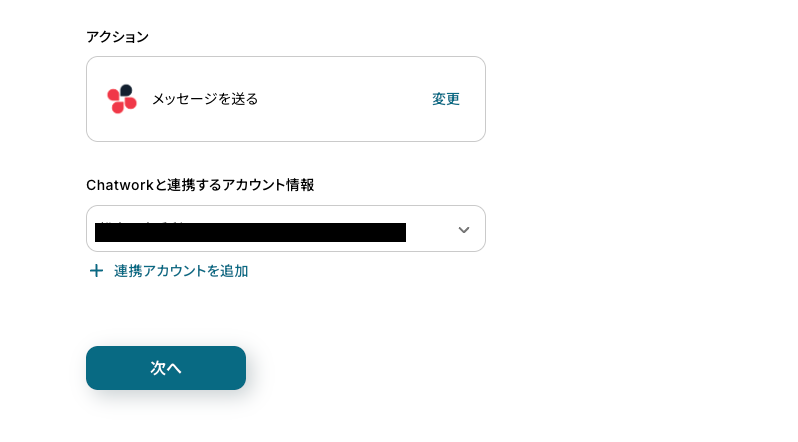 最後に「メッセージを送る」を選択して、連携するアカウント情報を入力してください。