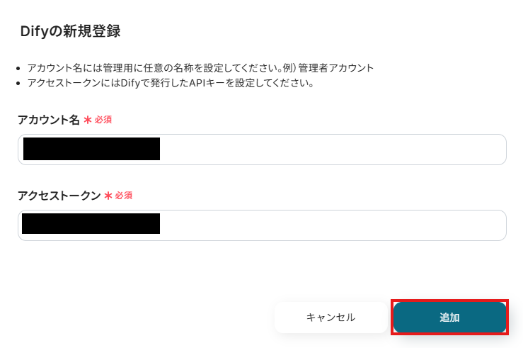 - Difyのマイアプリ連携方法はこちらをご参照ください。