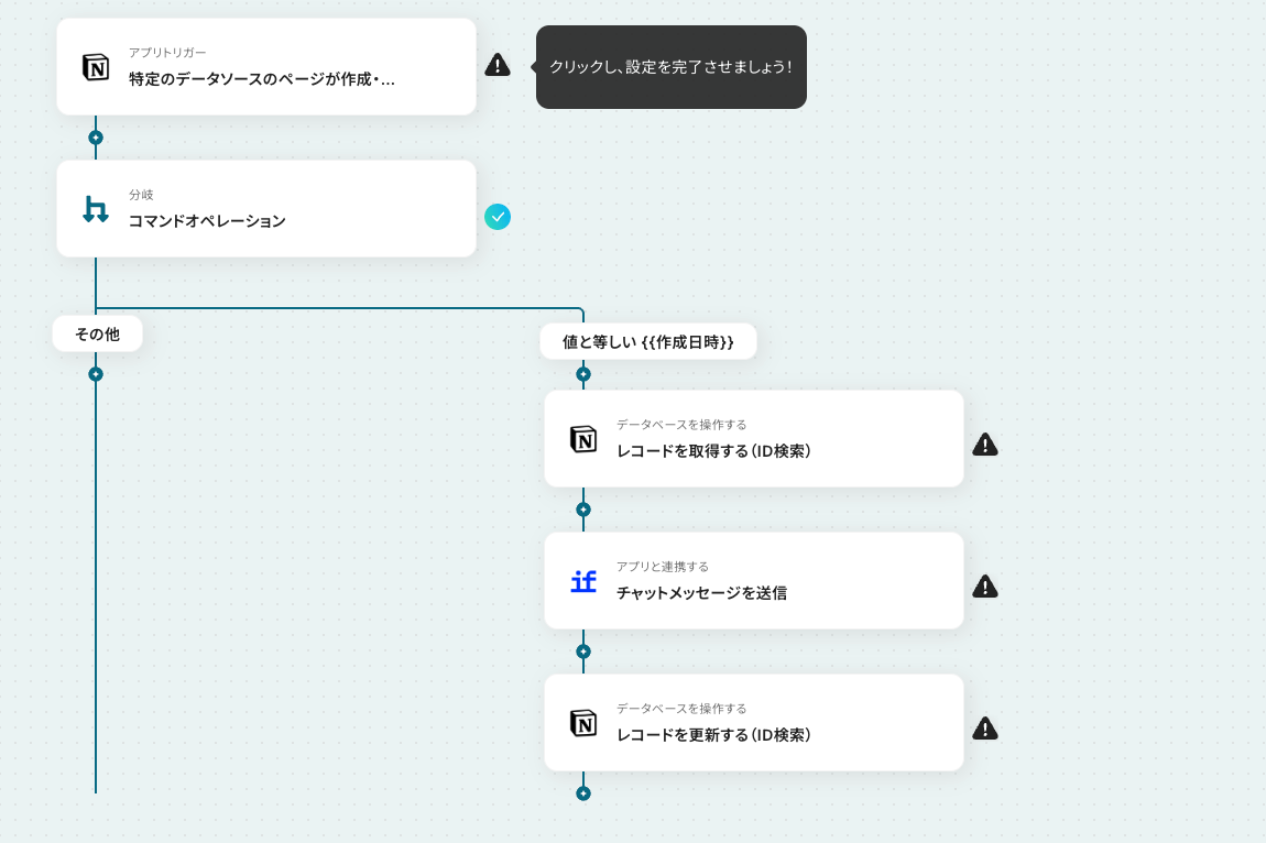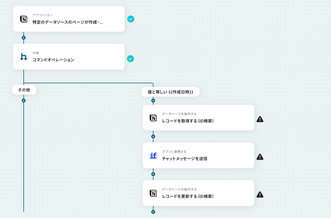 - 次に、オペレーションで分岐機能を設定し、特定の条件に基づいて後続の処理を分岐させます。