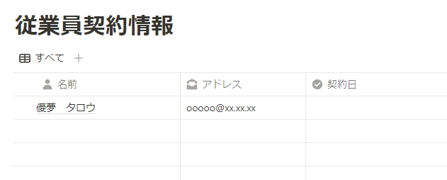 このNotionのページにある「アドレス」へ契約書を送付するため、アドレスの項目は作成しましょう。