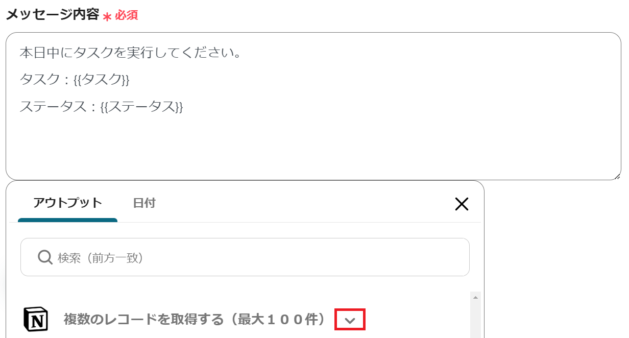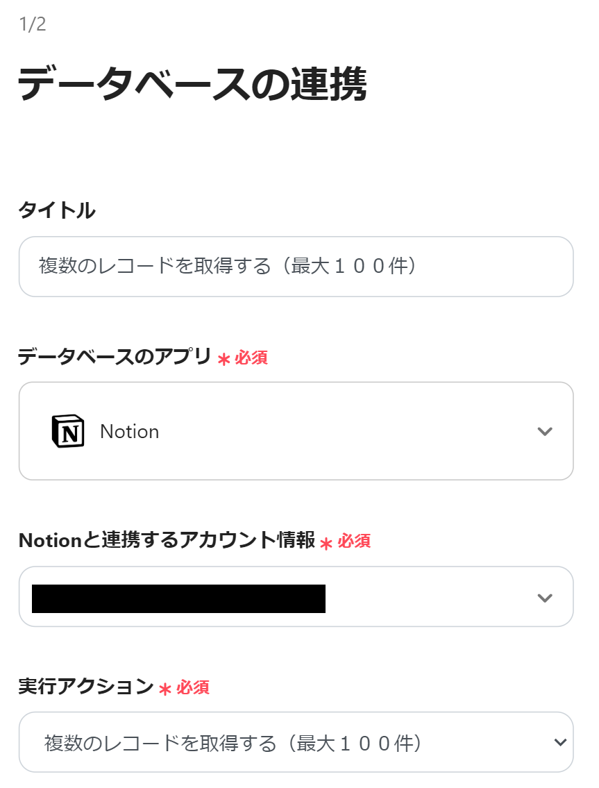 Notionの設定を行うので、「複数のレコードを取得する(最大100件)」をクリックしましょう。