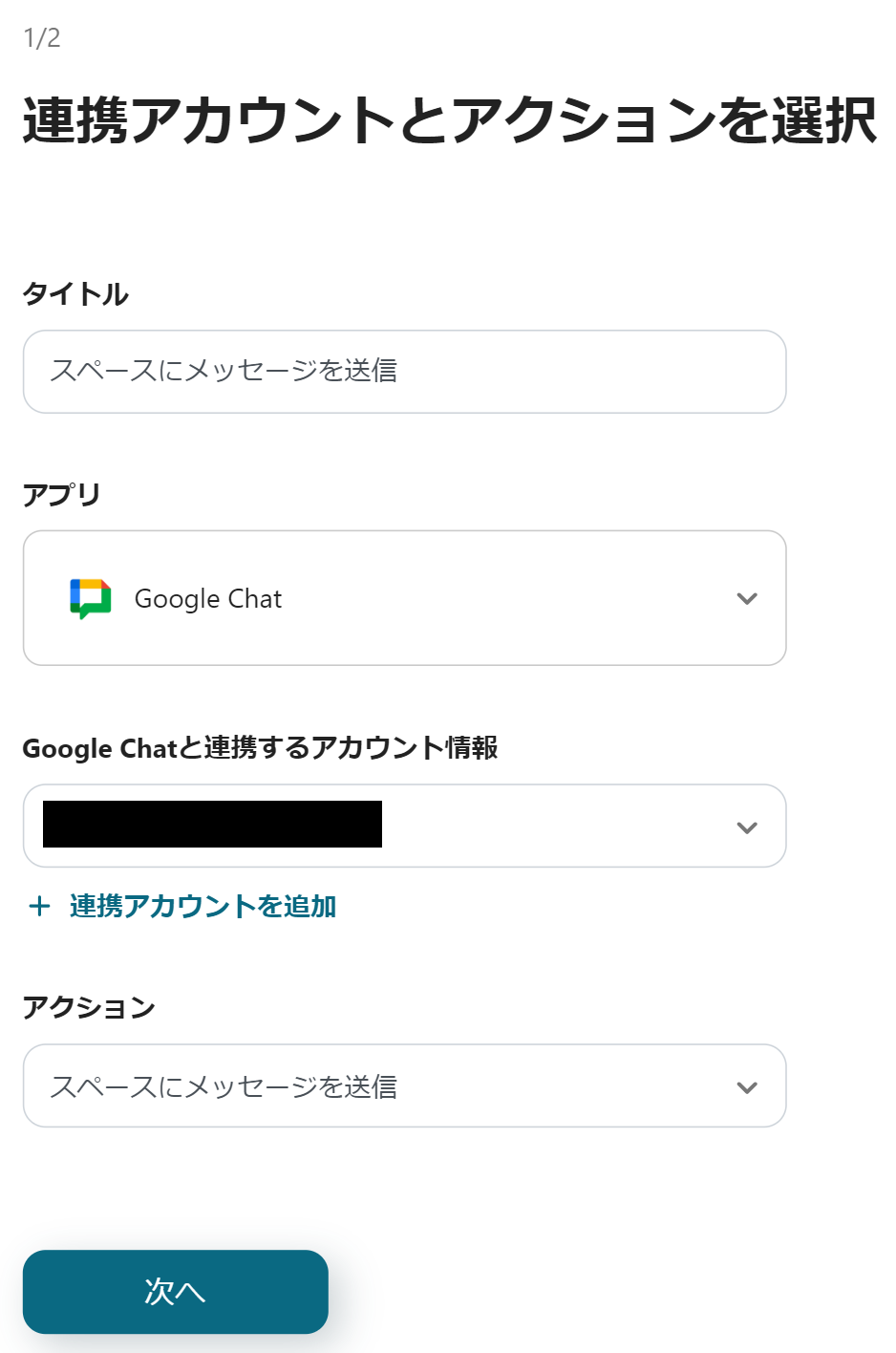 続いてGoogle Chatの設定を行うので、「スペースにメッセージを送信」をクリックしてください。