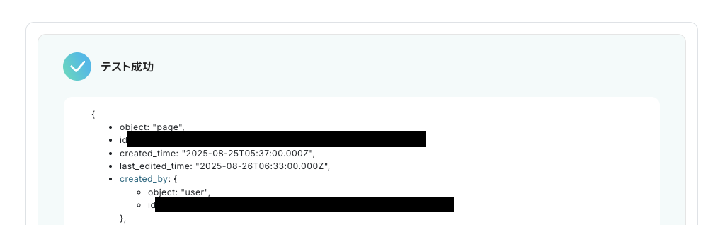 以下のようにテストに成功し、取得した情報が確認できたら、『保存する』を押しましょう。取得した値は、この後のステップで引用・活用できます。