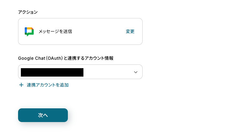 ※Google Chatとの連携はGoogle Workspaceの場合のみ可能です。詳細はGoogle Chatでスペースにメッセージを送る方法 を参照ください。