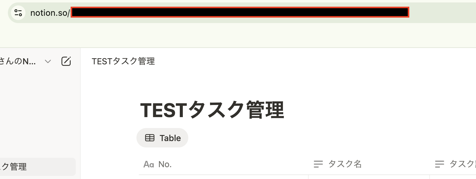 両方とも入力をしたら、指定したデータソースを更新(作成した場合はそのまま)してから「テスト」をクリックしてください。 今回はタスクに関するページのデータベースを使用して、テストを行いました。