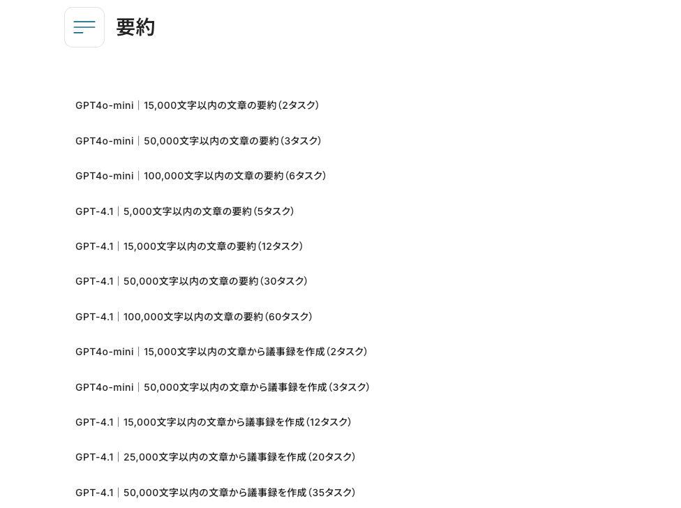 10)アクションは「GPT4o-mini|15,000文字以内の文章の要約(2タスク)」を選択して、「次へ」をクリックします。(アクション名の右側「変更」を押下すると、実行アクションを変更できます。)