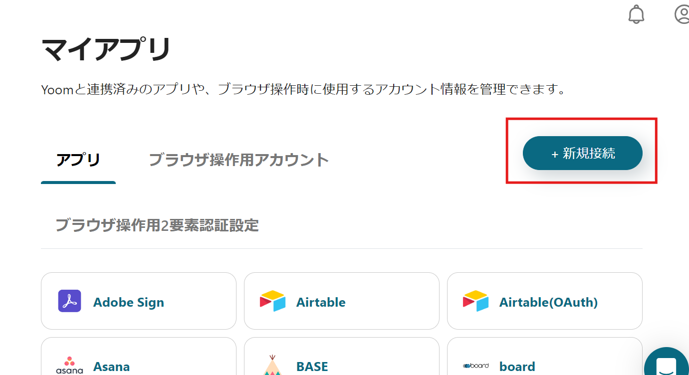 Yoomのアカウントにログインしたら、使用するアプリを登録します。
