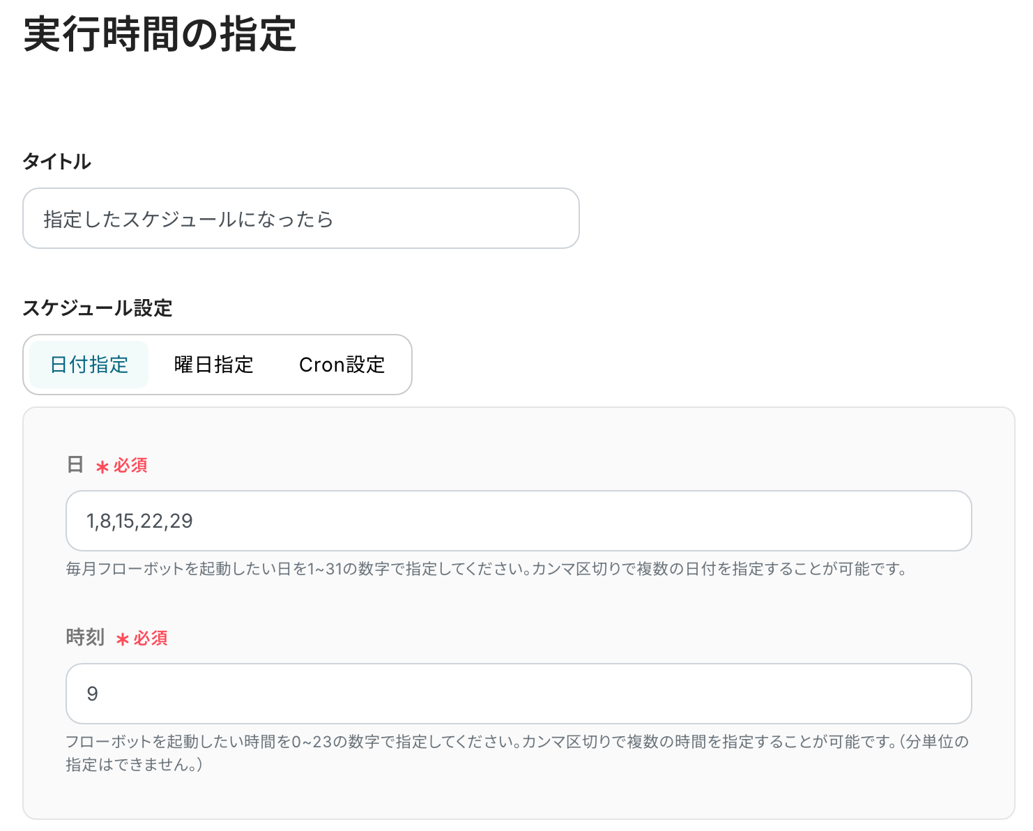 今回は、毎月1日、8日、15日、22日、29日の午前9時にフローボットが起動するよう設定してみました!