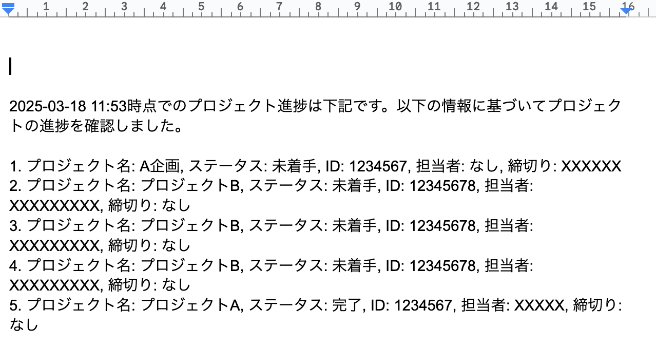 無事にNotionのデータの情報が指定のドキュメントに反映されました!