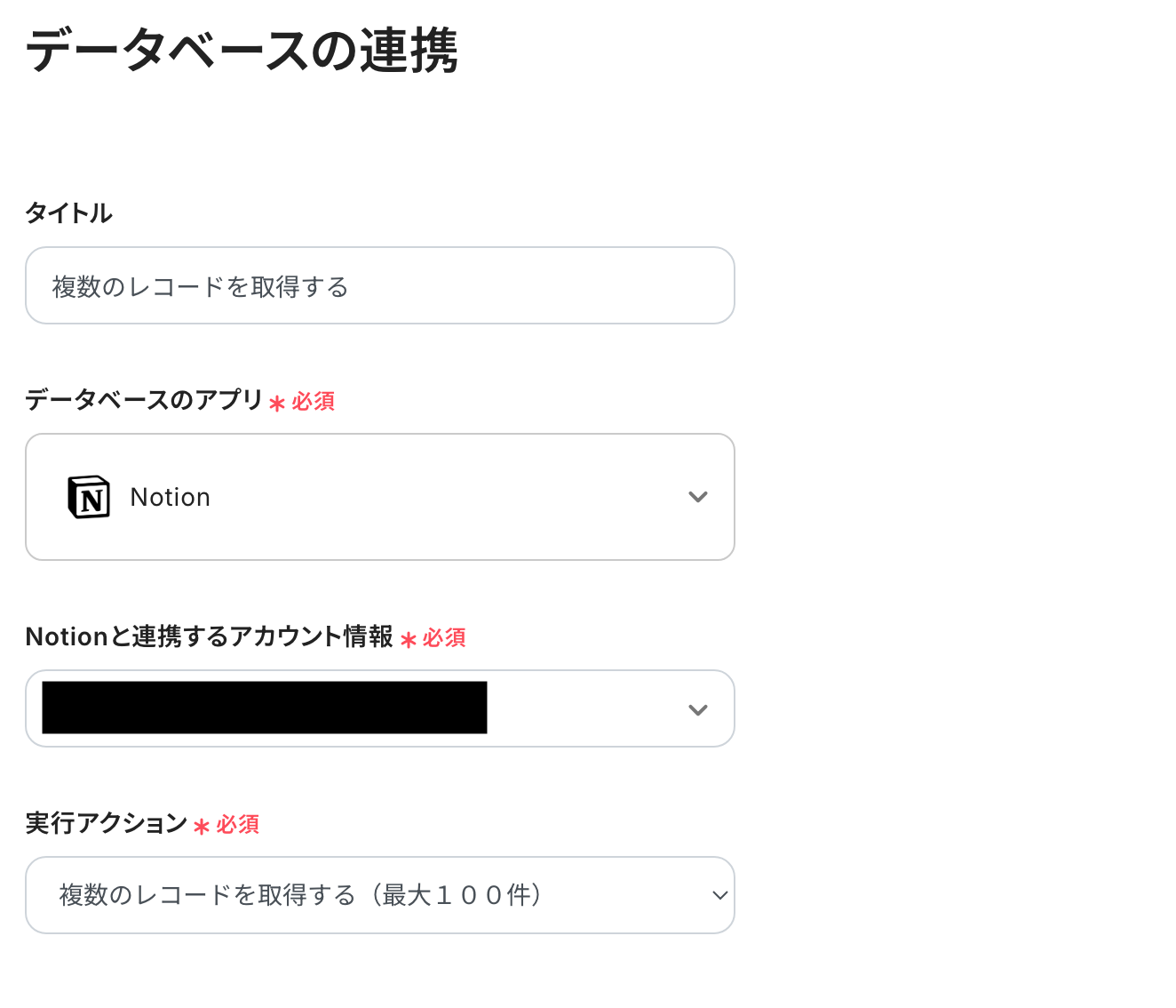 ステップ4:Notionのレコードを取得する設定