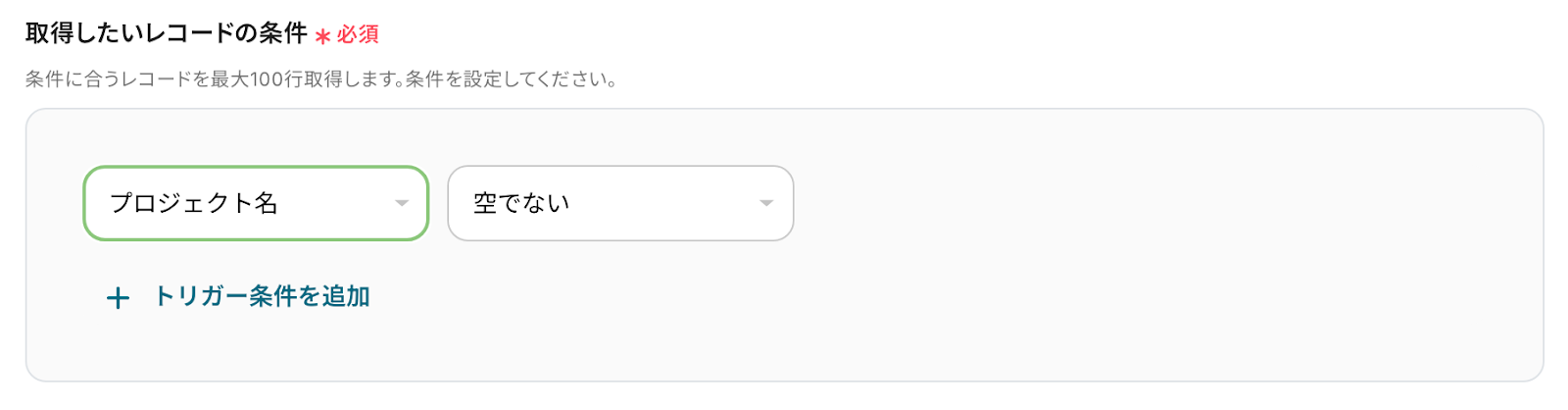 次に、取得したいレコードの条件を選択し、入力します。
