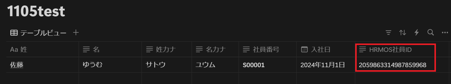 Notion側も確認すると、HRMOS社員IDが反映されていました!