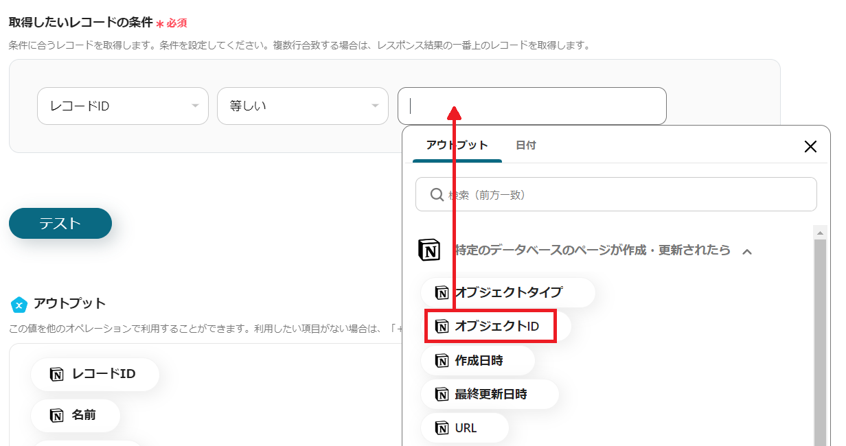3.取得したいレコードの条件の設定