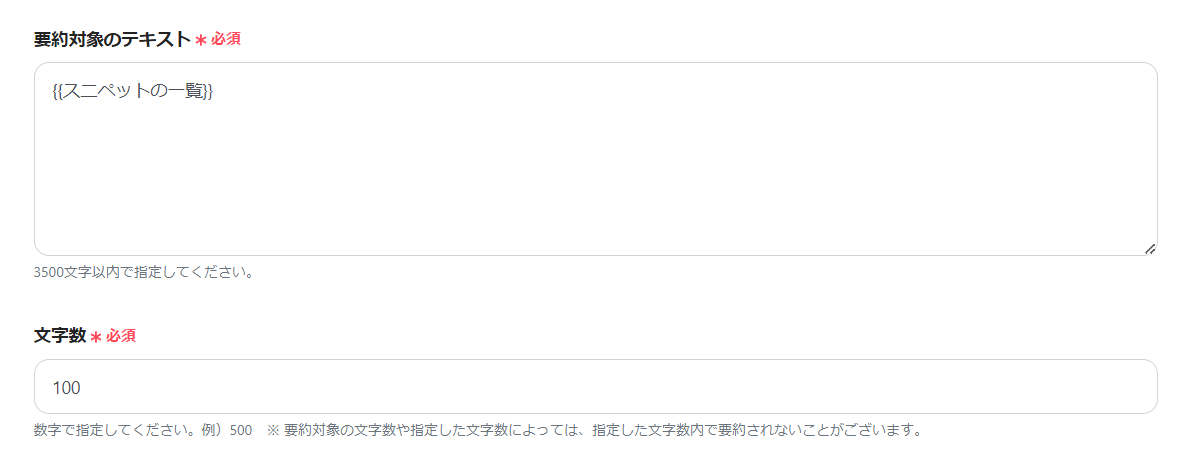 要約後の文字数に変更がある場合は、任意で設定しましょう。