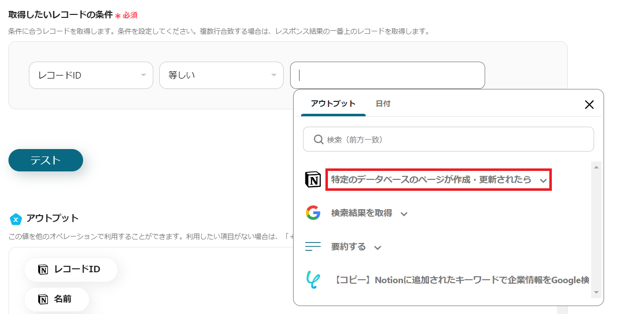 Notionのアイコンの「レコードを更新する(ID検索)」を選択してください。