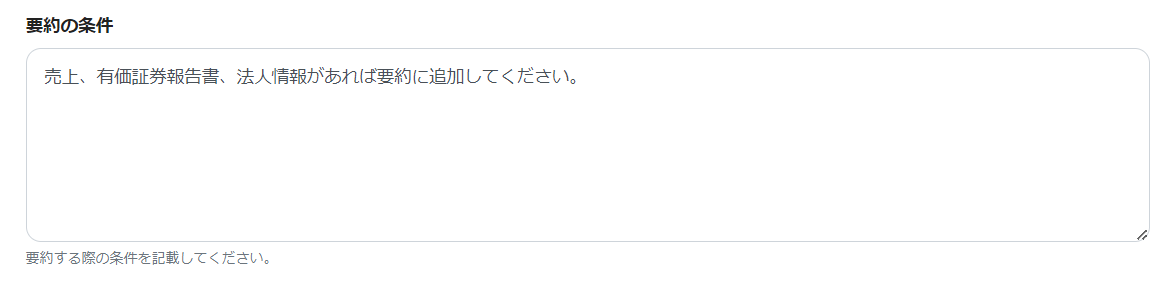 要約の条件がある場合は設定してください。