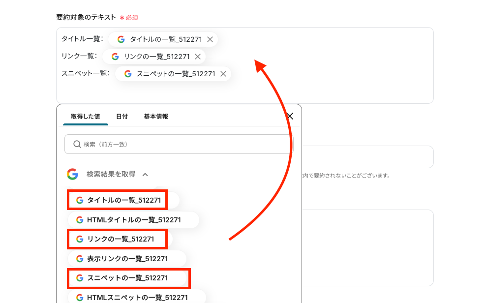 今回は「要約結果」というカラムを用意しているため、「要約する」をクリックして挿入しましょう。