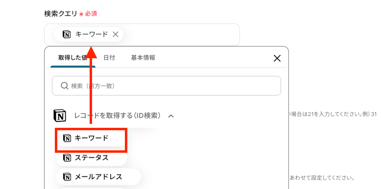 ステップ4:Notionに追加したキーワードを取得する設定