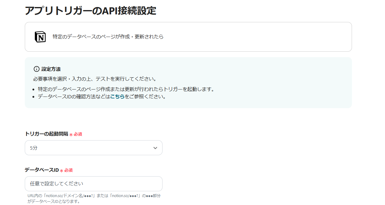 データベースIDはアプリ登録ができていれば候補から選択できます。