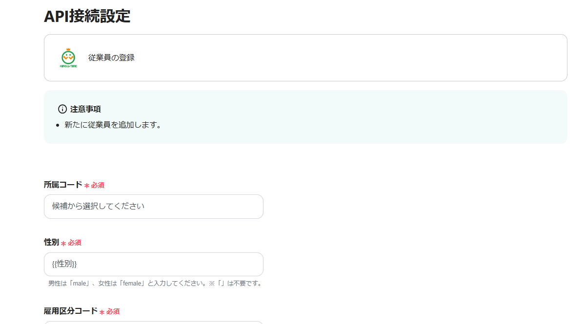このテンプレートは、SmartHRで従業員が登録された際に、KING OF TIMEへ自動的に情報を連携・登録する仕組みです。