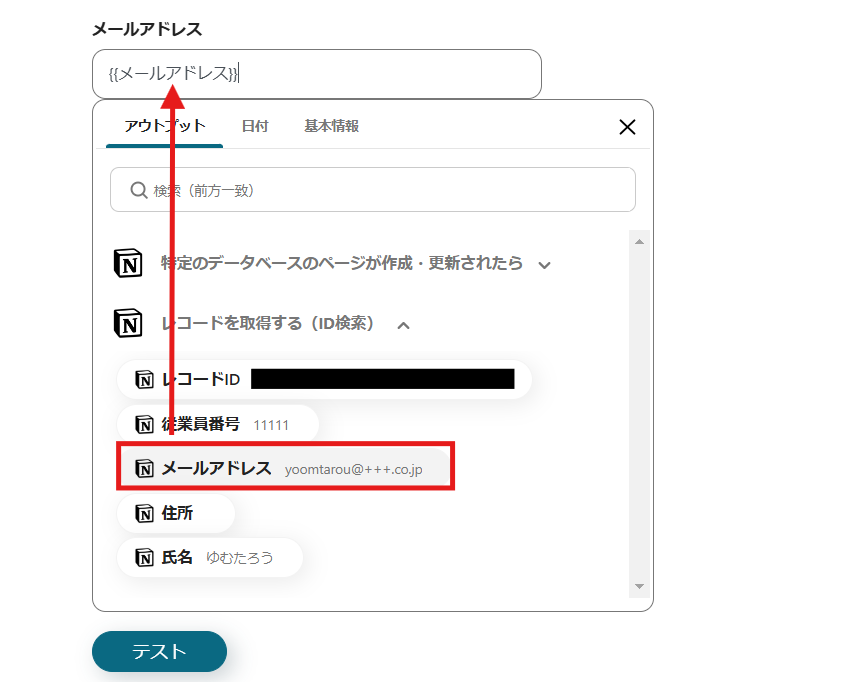 先ほど取得したNotionのアウトプット情報を活用して入力できます。