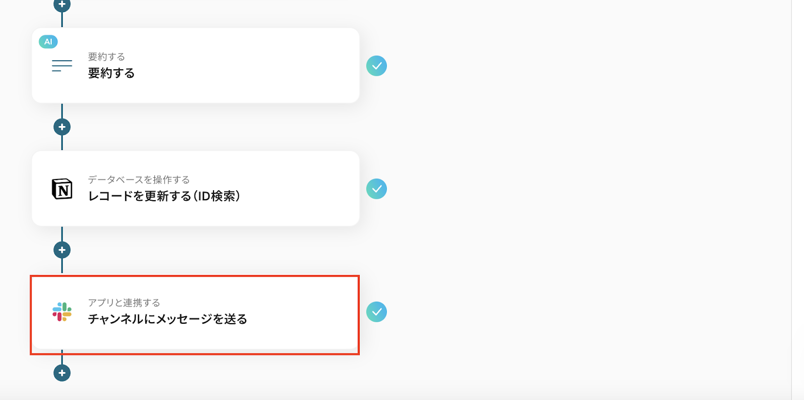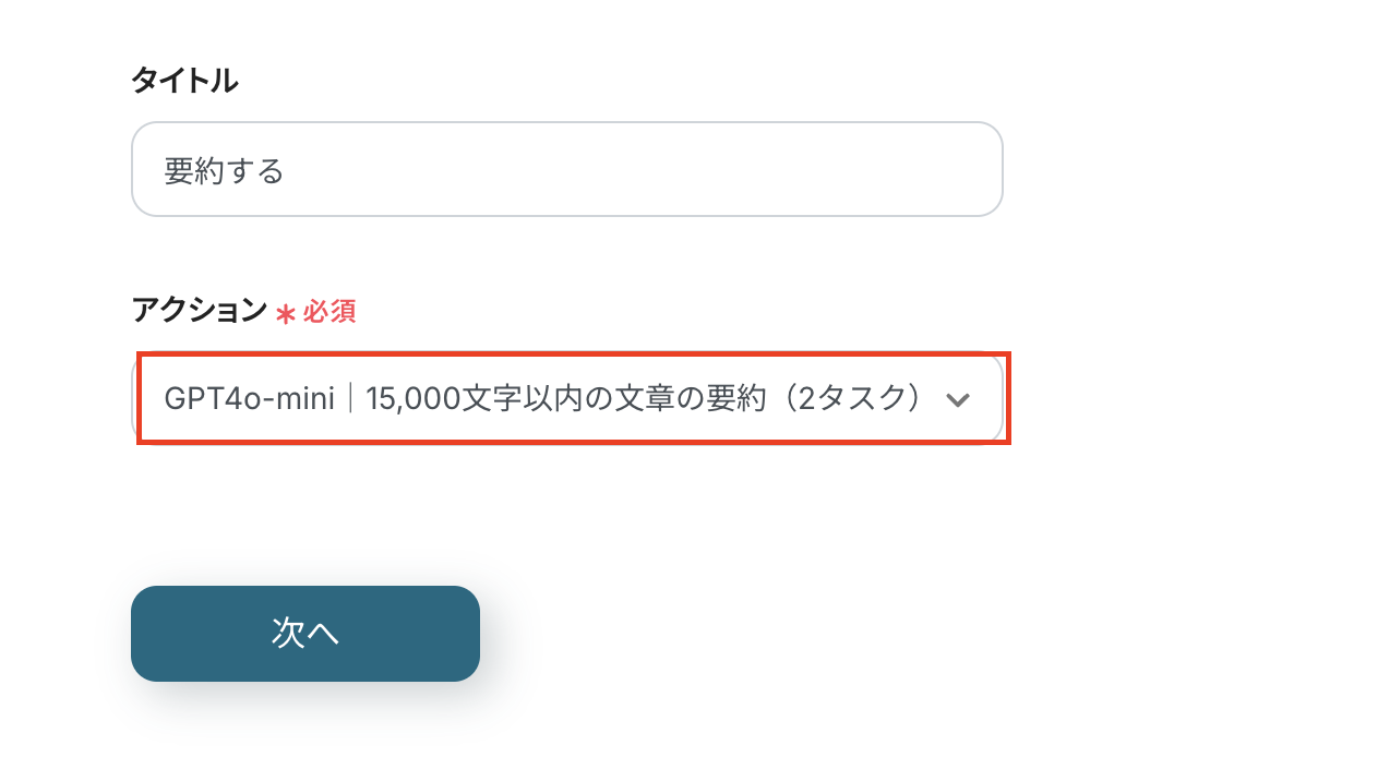先ほどはYoomの「要約する」機能を活用しましたが、CharGPTを活用しても同様のフローボットを作成できます。