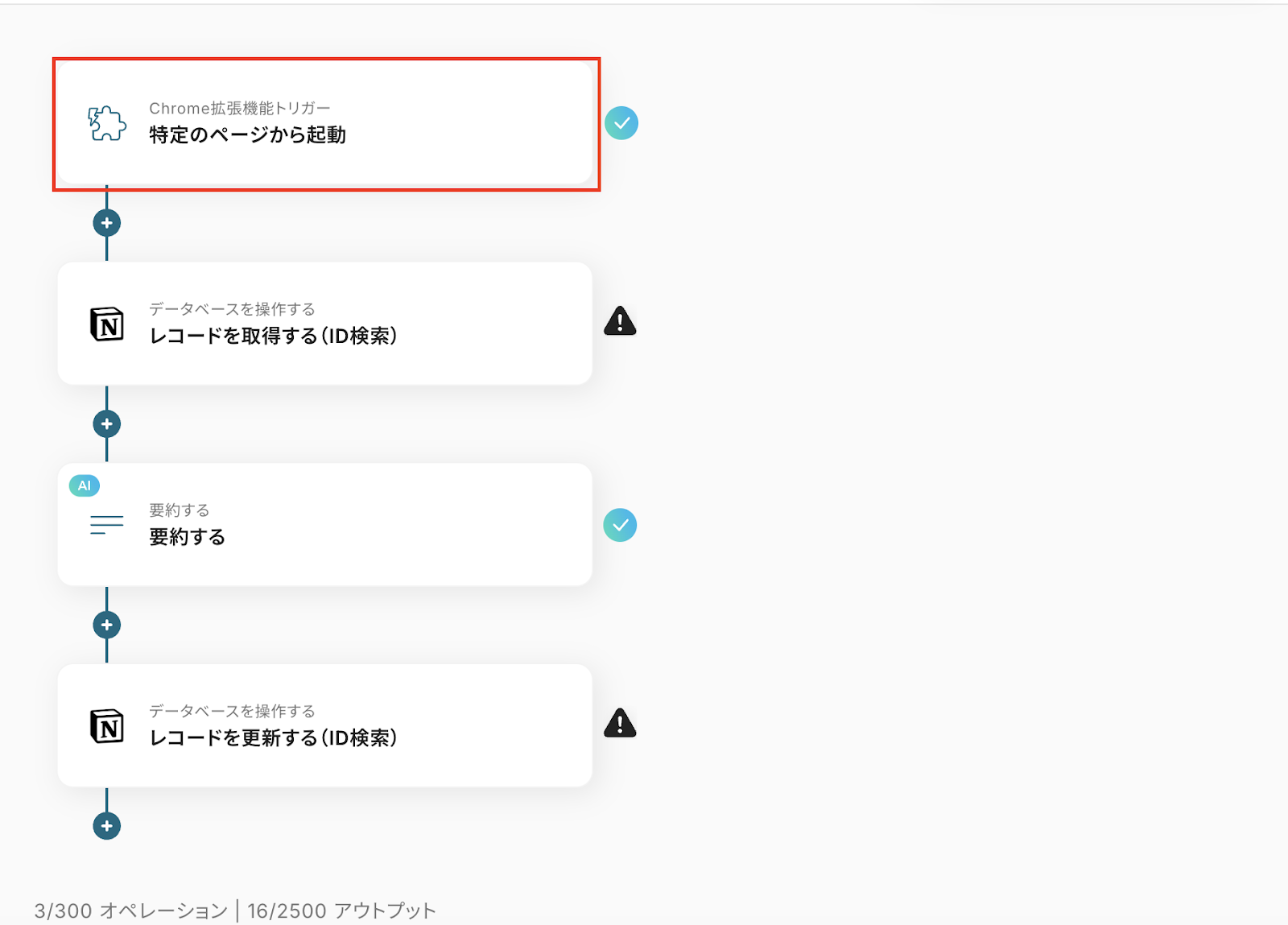 Notionの設定を行ったら、トリガーをONにし動作チェックをしてみましょう!