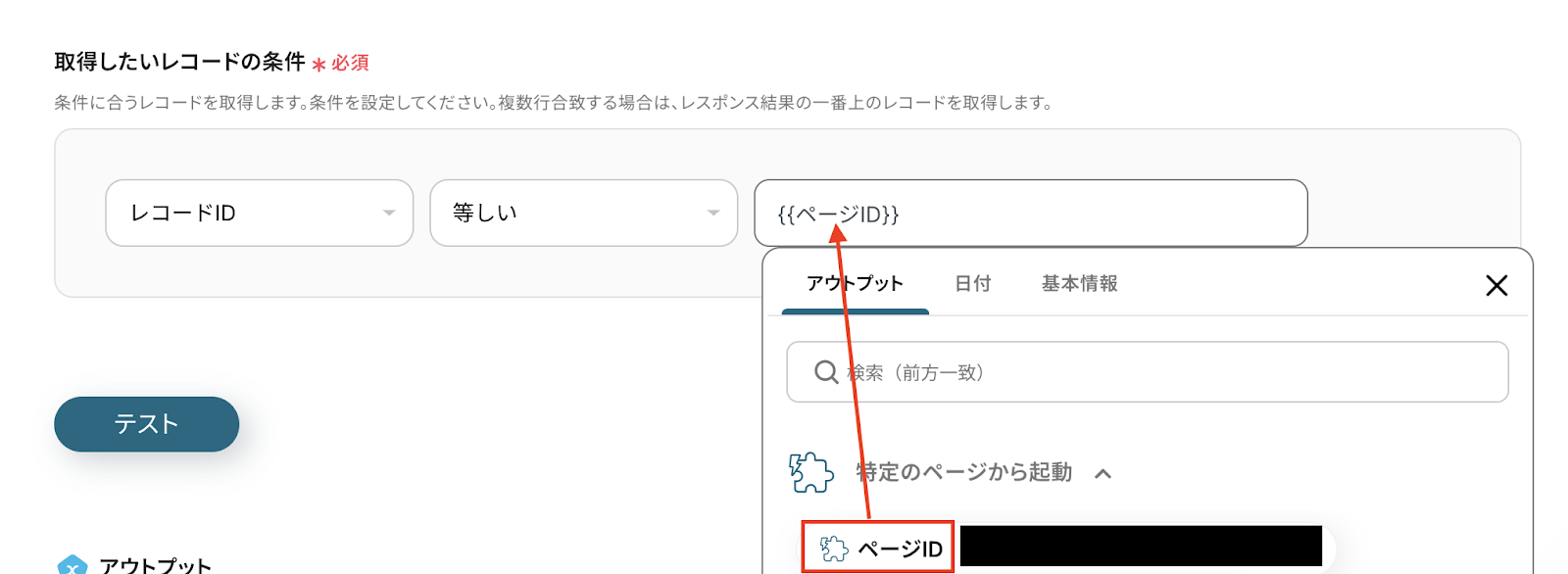 設定後、テストを実行しアウトプットが取得できたら保存してください。
