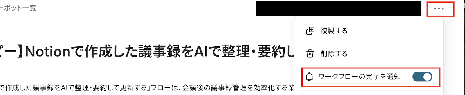 ワークフロー通知をONにしておくと、フローボットが起動したことを知らせてくれます。