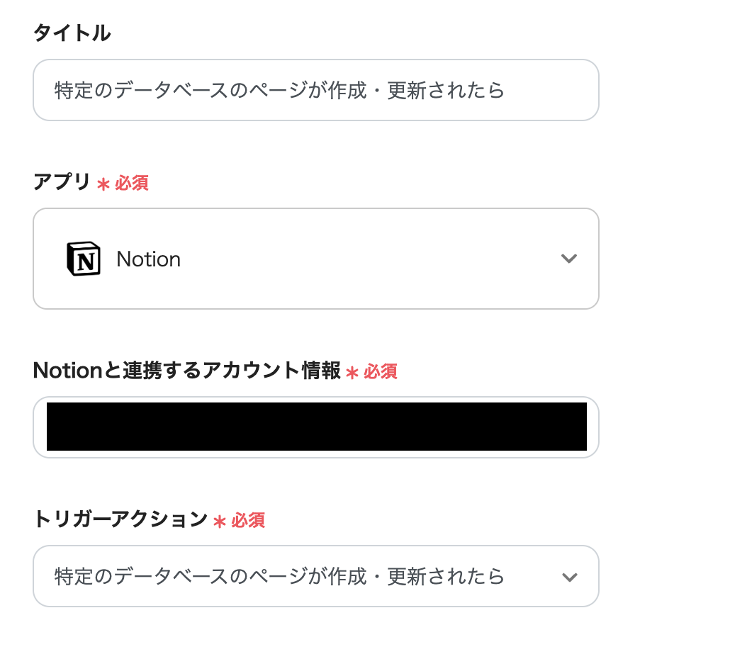 (8)Notionのアカウント情報が入力されていることを確認し、データベースIDを入力します。