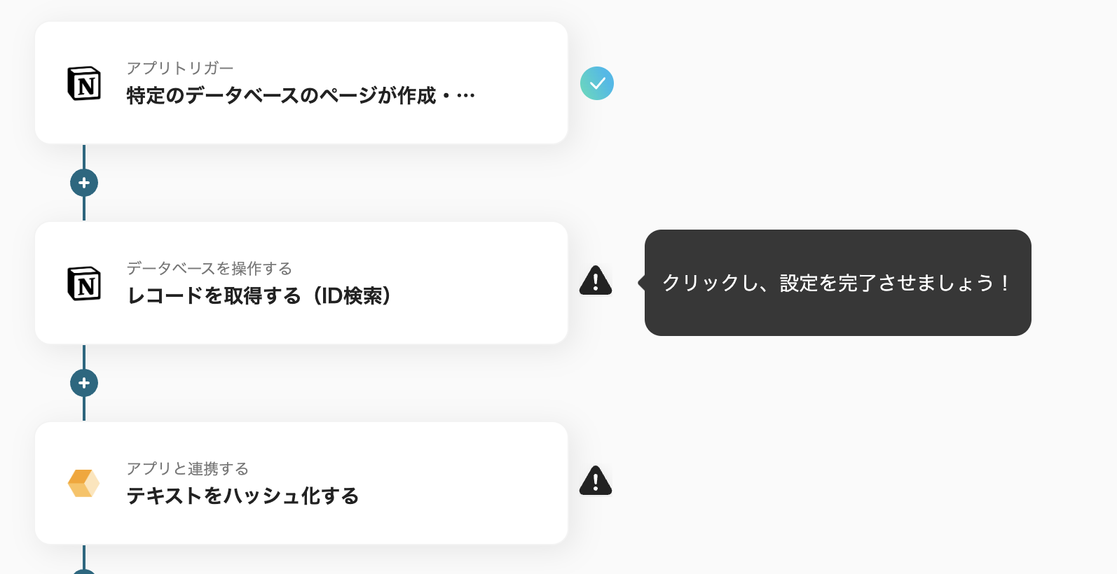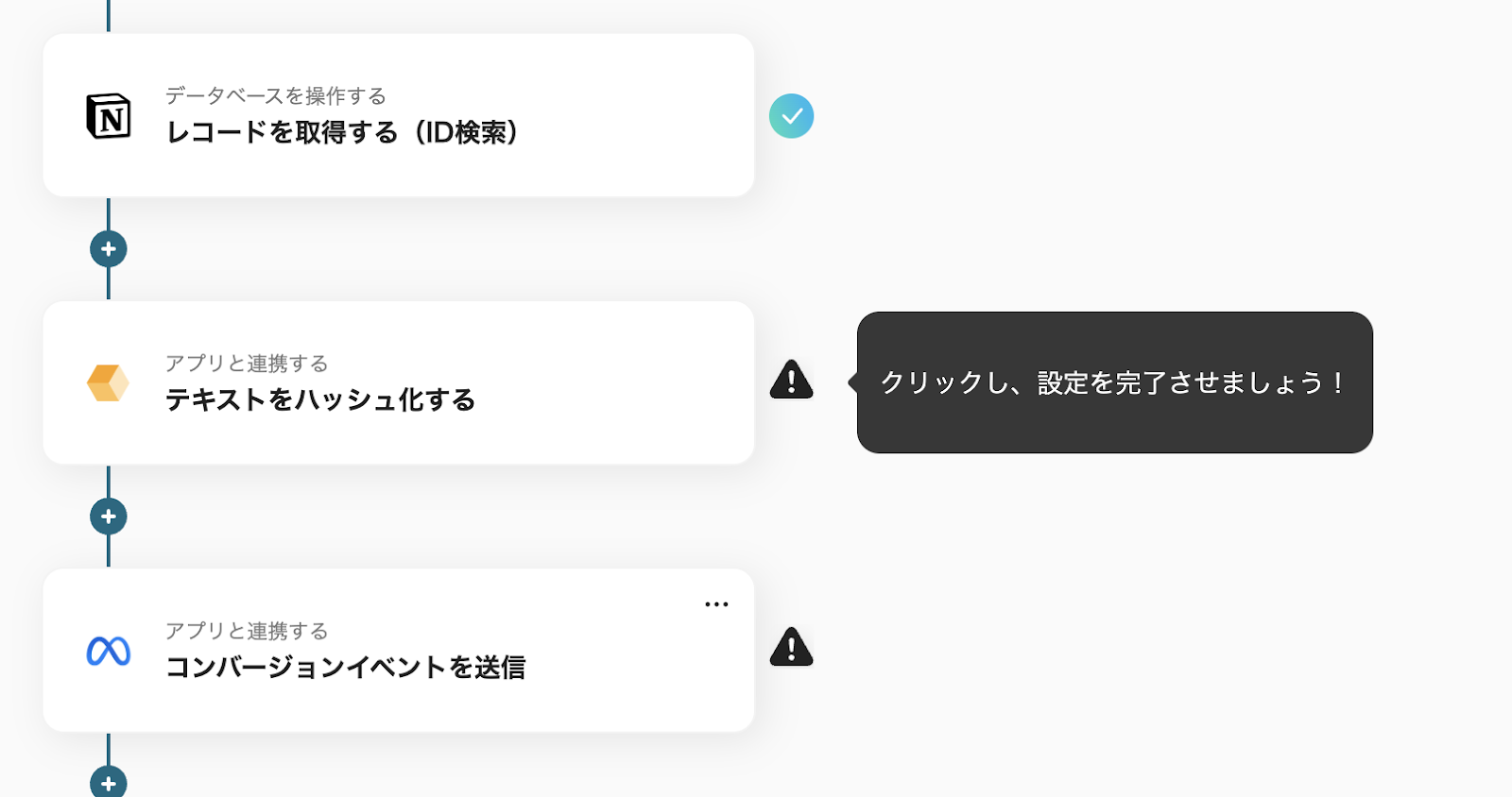 3つ目のアクション「テキストをハッシュ化する」をクリックしましょう。