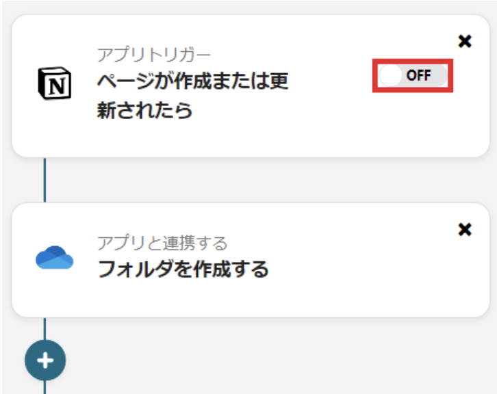 Notionのデータベースに新しくページが作成されたら、OneDriveにフォルダを作成するフローです。
