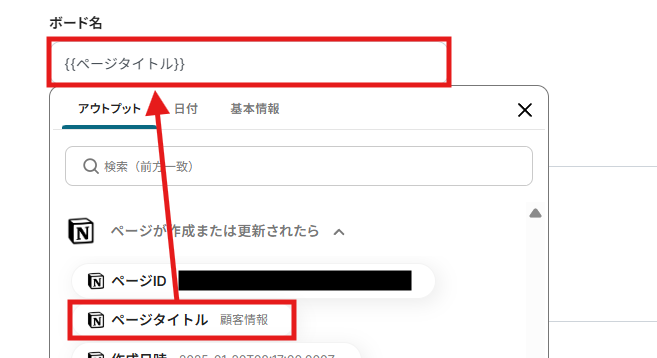 例えば、ボード名をページのタイトルと同じ名称にしたい場合は、「ページタイトル」を選択しましょう。