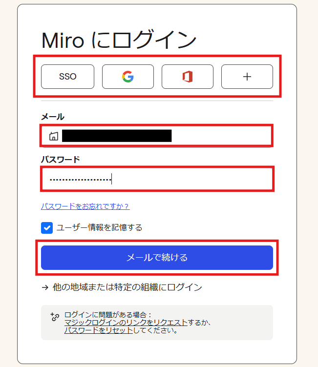 2.Yoomと連携したいMiroのアカウントにサインインします。