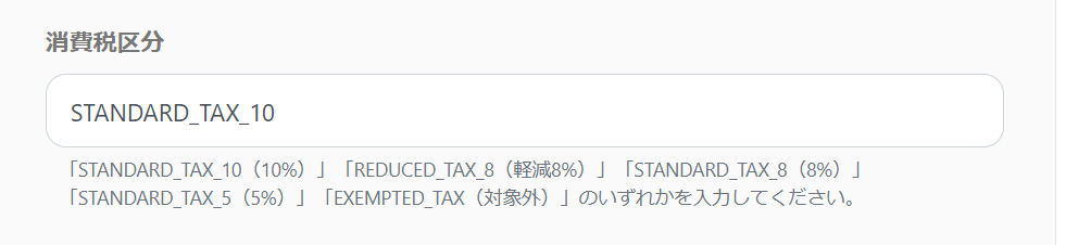 消費税区分についてはアウトプットではなく、該当税率の入力をお願いします。