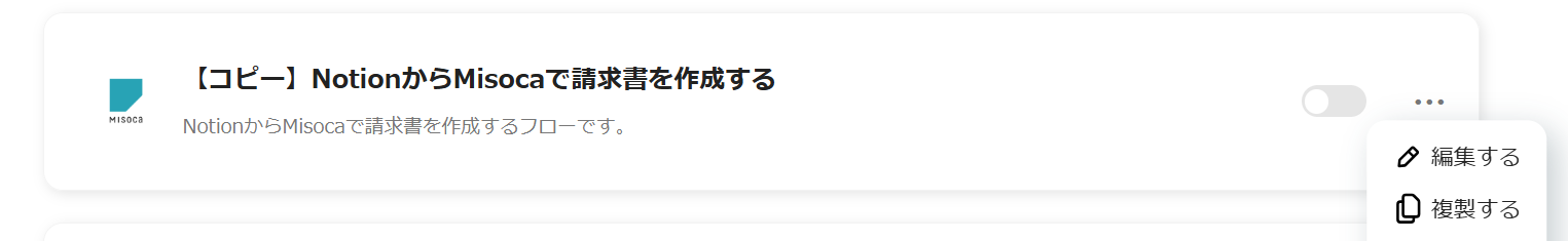 トリガーボタンをONにして、NotionとMisocaの連携フローの動作確認をする。