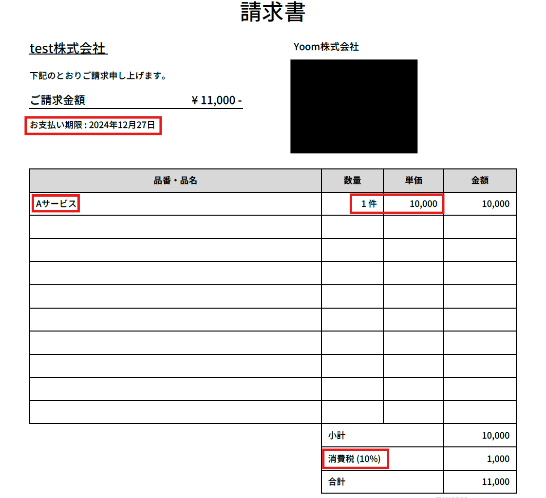 無事に請求書が作成されていますね。 ここまでお疲れ様でした。 プログラミングに詳しくない私でも、簡単に進めることができました。